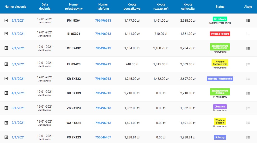 Aplikacja pozwala na łatwe i wygodne informowanie klientów o przebiegu naprawy,